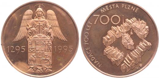 Nadace 700 let města Plzně 1295 - 1995 Znak města, vročení / památkové objekty, opis, Cu 40 mm, 23 g