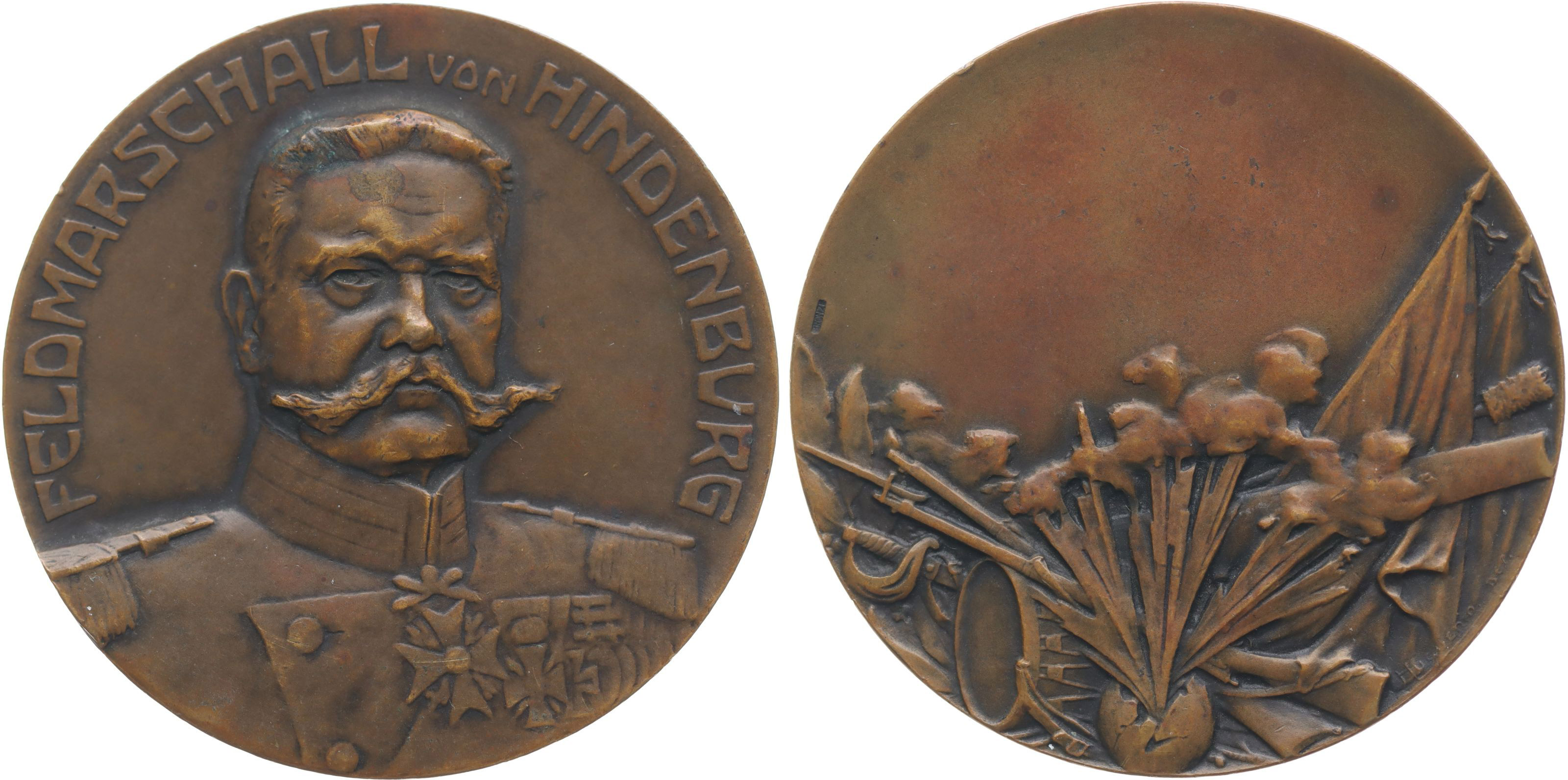Polní maršál Hindenburg, b.l. Poprsí čelně, opis / vybuchlá bomba, válečné atributy Bronz 50 mm, 47,35 g