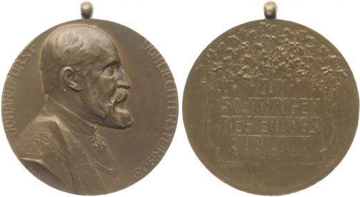 Hujer - medaile k 50. výročí vlády 1858 - 1908 Poprsí zprava, opis / 4řádk.nápis pod květy Sign., Bronz 35 mm_orig.raž.ouško R!
