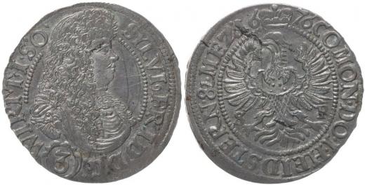 3 Krejcar 1676 SP, SJ.219/58, Fr.2296, Kop.6210