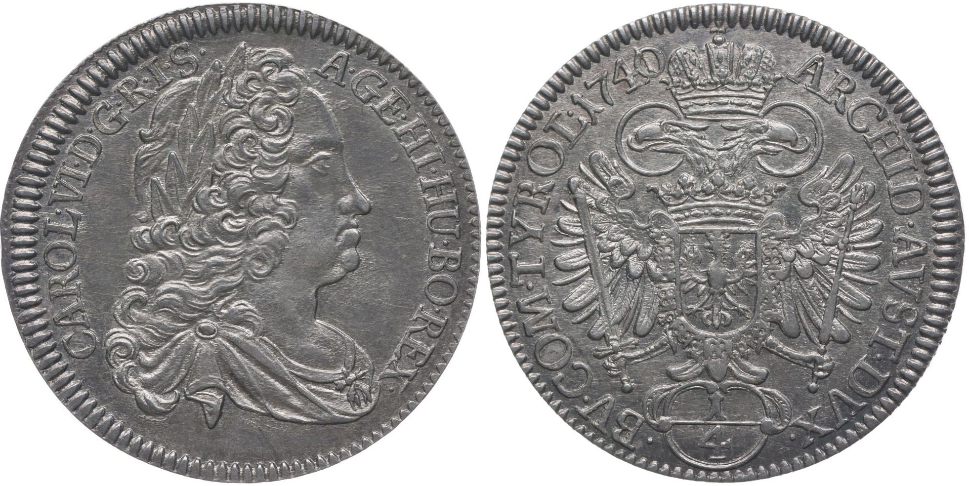 1/4 Tolar 1740, Hall, M-A.240, Her.588v, var. v opisu "V" místo "U" a letopočet upraven ze 1741 na 1740