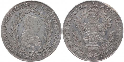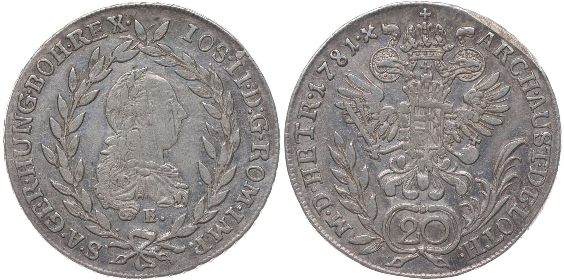 20 Krejcar 1781 E, Karlovský Bělehrad, P.31_n.just. v av.