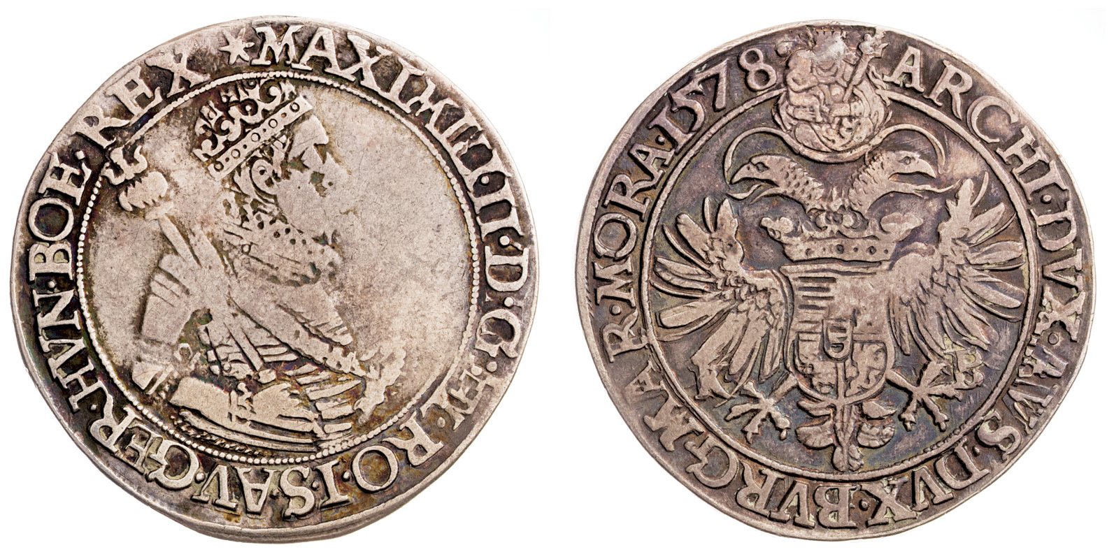 Maxmilian II. (1564-1576) 1/2 tolar 1578 KB, Hus. 983, chybí ve Vídeňském Münzkabinetu "R"