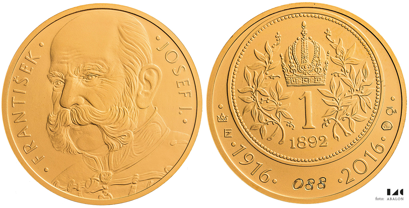 2 dukátová medaile Františka Josefa I. 2016, motiv koruny 1892, Au 25 mm, 6,98 g, 986/1000, sig. Fojtů, etue, karta, č. 88