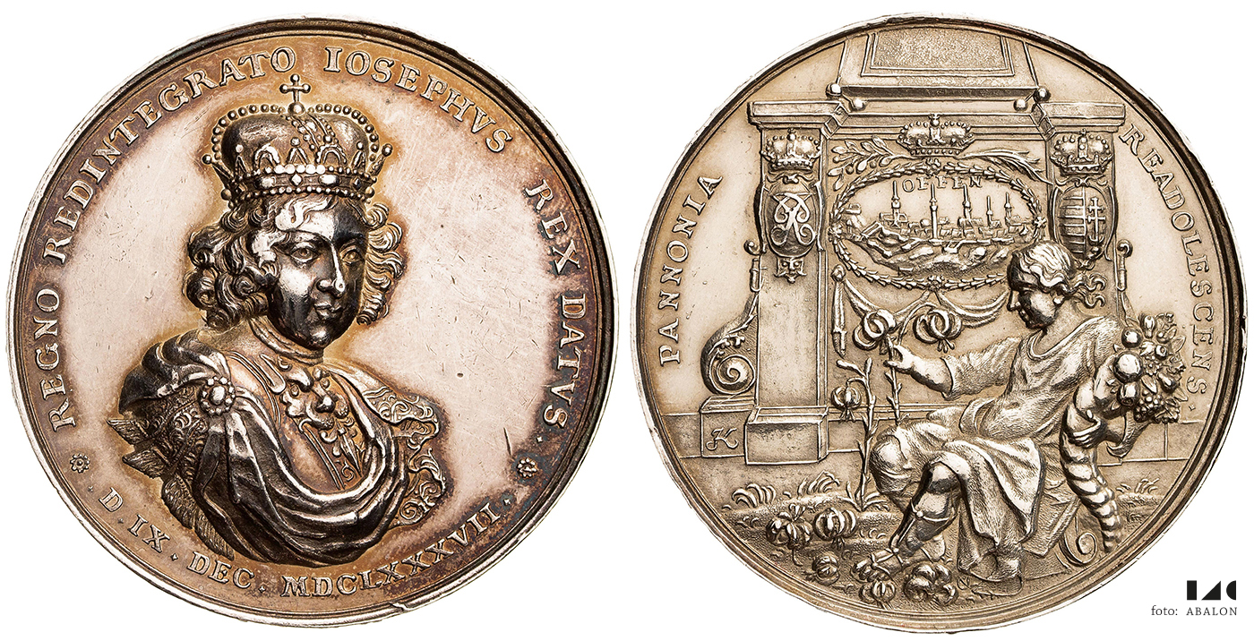 Medaile na korunovaci uherského krále 1687 v Bratislavě, Ag 50,5 mm, 48,66 g, Nov. X A3b, n. hr.