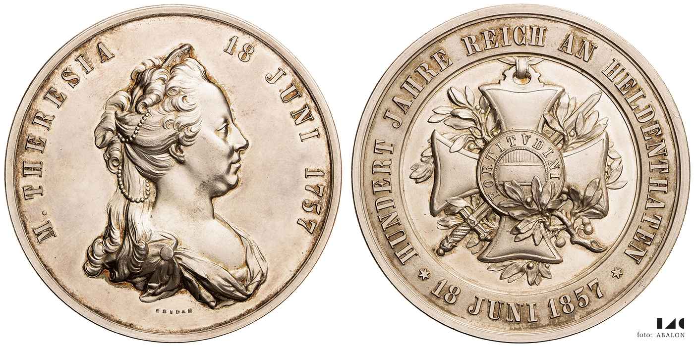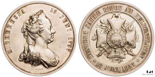Medaile na 100 let založení řádu Marie Terezie 1857, Ag 58 mm, 105,15 g, Hauser 1571