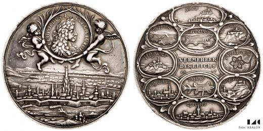 Leopold I. Medaile na dobytí 10ti pevností 1685, Ag 40 mm, 22,40 g, Mont. 975, nep.stopa po zavěšení