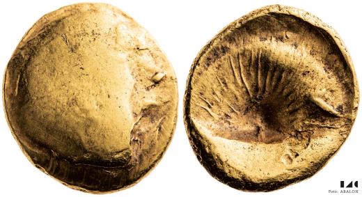 Statér 7,26 g, mušlová řada, půlměsíc s paprsky, Paulsen 352