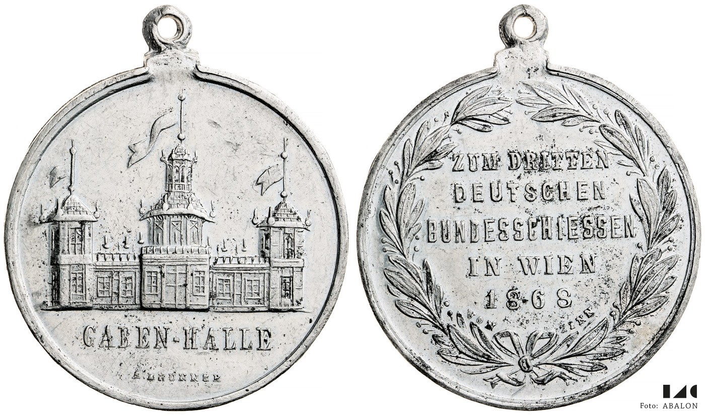 III. Německé spolkové střelby 1868, Sn 33 mm, sig. Bruner, ouško