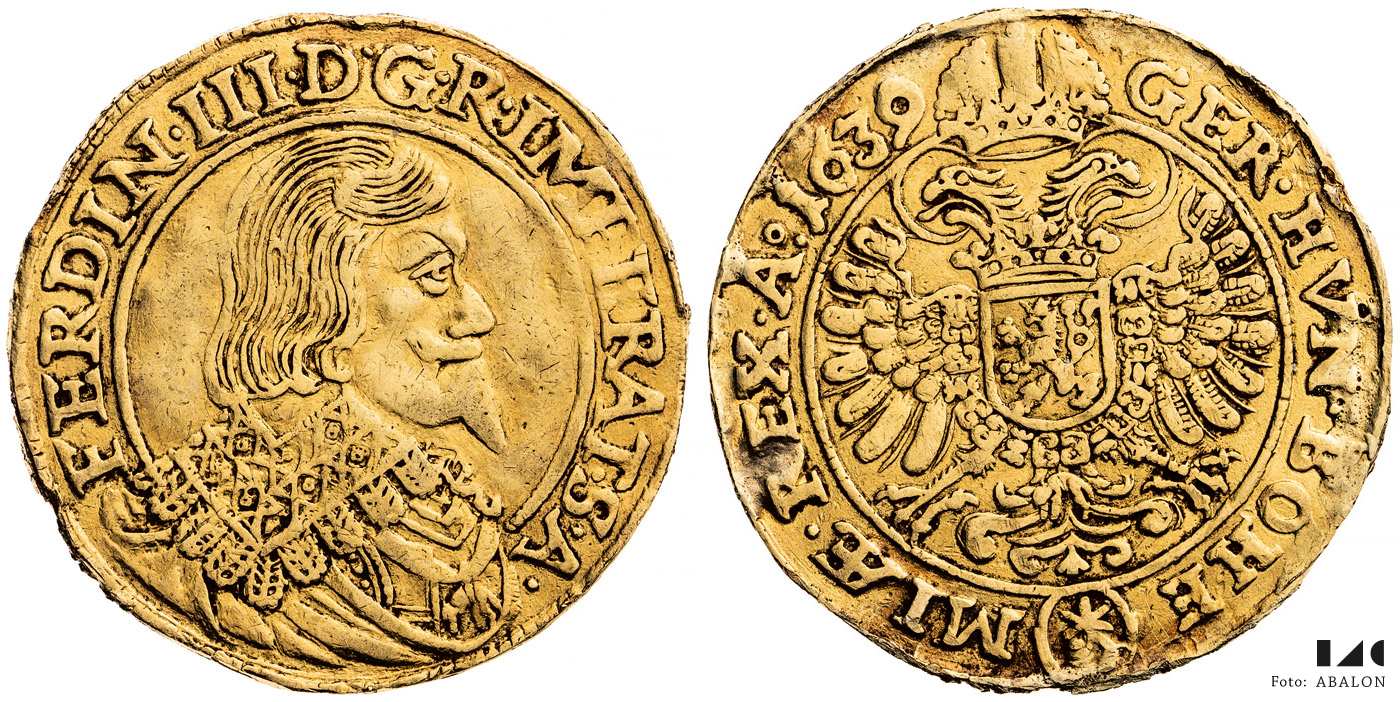 2 dukát 1639, Praha, Wolker, Hal. 1160, 6,61 g, dr. hr. Ražbou R