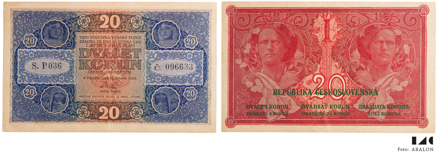 20 Kč 1919, serie P, dr. přelož., neperf.