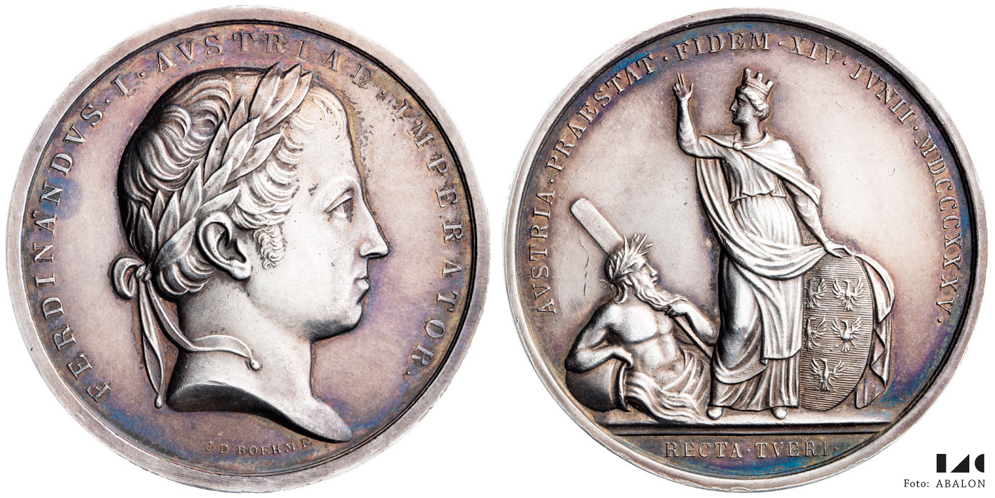 Medaile na holdování dolnorakouských stavů 1835, Ag 46,5 mm, 52,89 g, sig. Böhm, Hauser 14