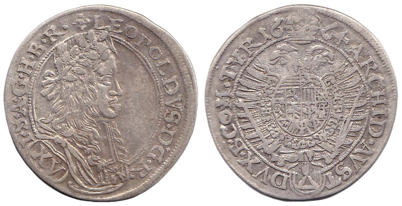 XV krejcar 1664 Neuburg am Inn-Triangel, Nech.2033, Her.1029 R