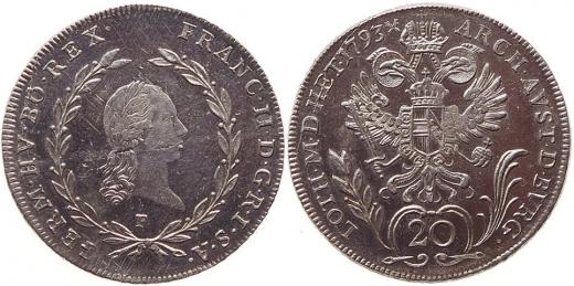 20 krejcar 1793 F, dr.vad.mat., dr.škr., nep.just., R -0/0-