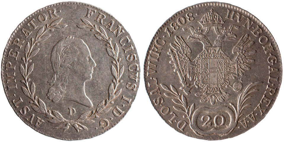 20 krejcar 1808 D, nep.hr., R 1/0-