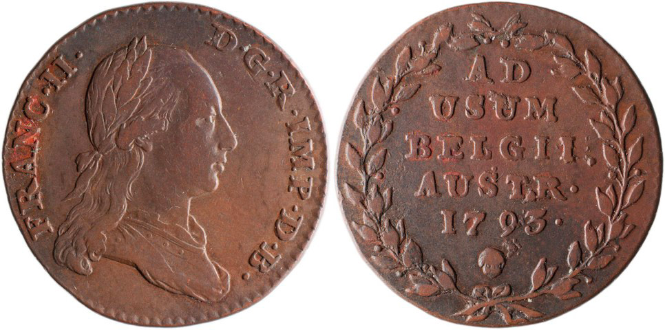 2 liards 1793 Brusel, patina, 7,42g 1/1