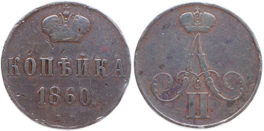 1 kopějka 1860 BM Varšava, Bitkin2.479, dr.škr., hr., R
