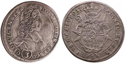 3 krejcar 1706, SV-342, M-360, oválný štítek, patina