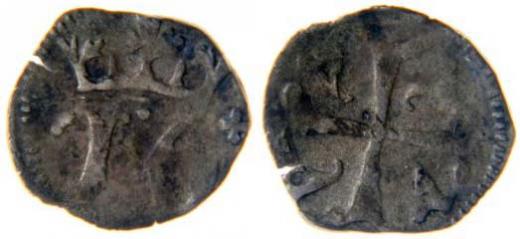 haléř s korunovaným IO/ v úhlech kříže "y", 0,305g, patina