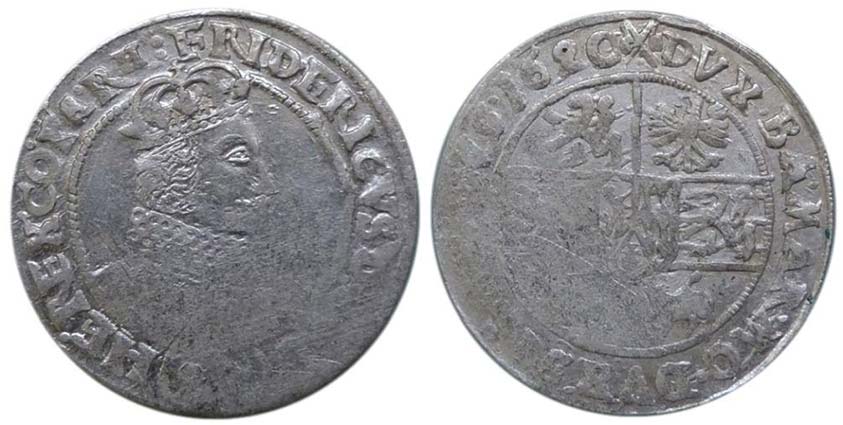 24 krejcar 1620 CC Opava-Cantor, MKČ 690, polský typ koruny 7,231g, 1/4 nedor., jinak