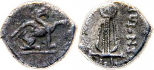 AR diobol, sedící gryf/lyra, Sear 4583, R
