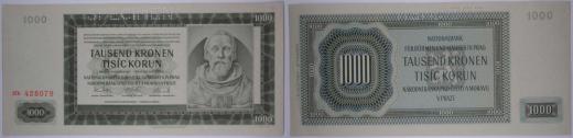 1000 Kor. (1942), série Ab 428079 Specimen, II. vydání, Nov.40B, Bajer 39a