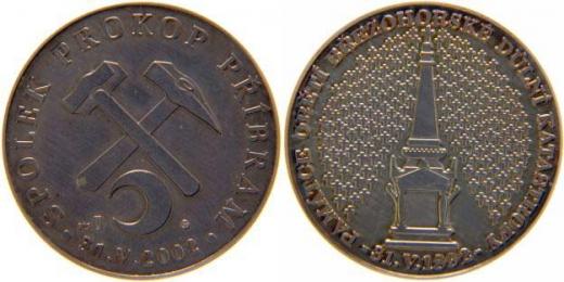 Příbram, historický spolek Prokop, Ag 925 medaile 2002, památce obětí důlní katastrofy 1892, 14,665g/30mm