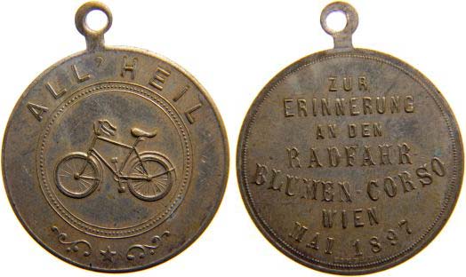 Wien 1897, cyklistická jízda "Blumen Corso", AE postříbřená 31mm, dobové ouško