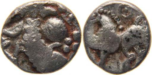AR drachma typ Kugelwange, lícní razidlo degradované ?, hlava/kůň, 2,25g