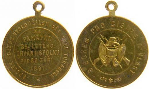 Tuřany 1897, spolek vojenských vysloužilců, 25 let trvání, AE 31mm, dobové ouško
