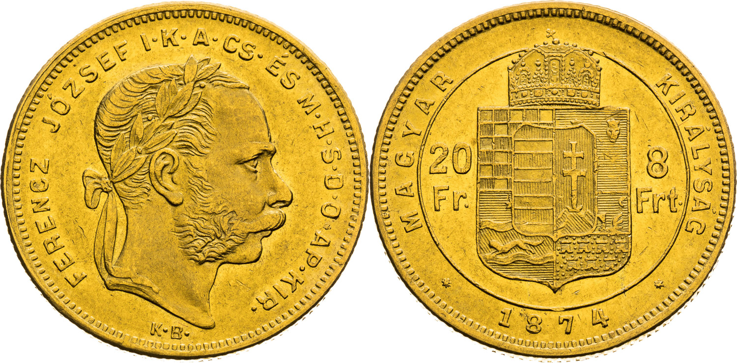 8 Zlatník 1874, Kremnica, 6,45 g, 21 mm, Au, Ex Rauch 78/2006 #3856, Frühwald 1721, Herinek 256, Friedberg 242, Huszár 2115, Novotný 127,