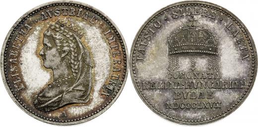Stříbrný žeton 1867, Korunovace na uherskou královnu v Budíně, Viedeň, J. Tautenhayn, F. Gaul, 5,5 g, 23,5 mm, Ag, Ex Horn collection, Novák V-XIX-C-4b, Horsky 3796, Montenuovo 2715, Frühwald III./3b, Hauser 829,