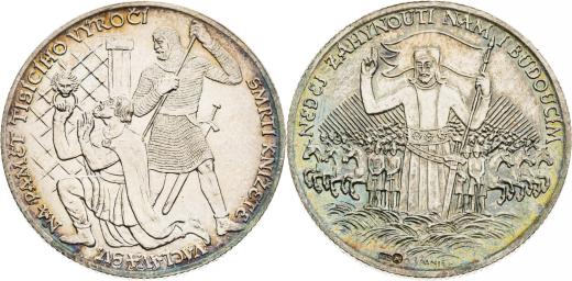 ČSR (1918-1939) Stříbrná medaile 1929, 1000. výročí smrti svatého Václava, Kremnica, O. Španiel, 10 g, 30 mm, Ag, M&CH CSR1-MED3, Novotný III.B, Raženo 3 200 ks.Puncovaná. Pěkná patina.