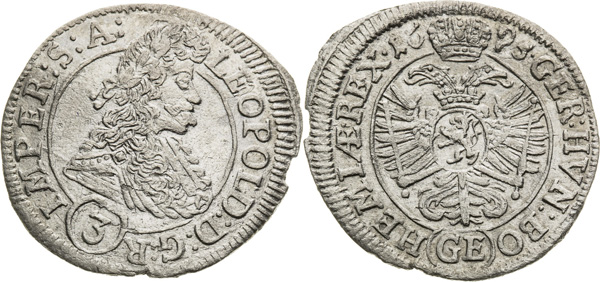 3 Krejcar 1695, Praha, Ag,