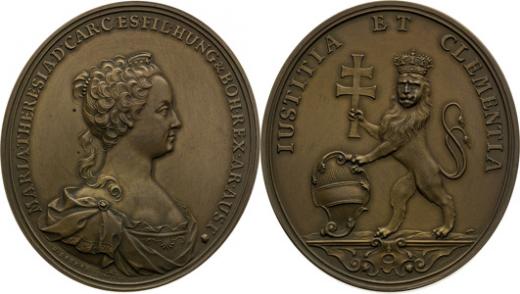Bronzová medaile 1743/1958, Korunovace na českou královnu v Praze, Viedeň, D. Becker, 29,19 g, 47,7x41,8 mm, Bronz (Bronze), HMA Wien -,