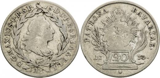 20 Krejcar 1774, Bavorsko, Viedeň, 6,47 g, 29,1 mm, Ag,