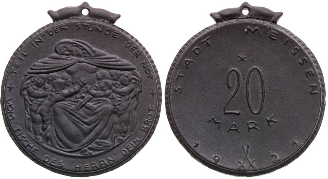 20 Marek 1921 , mesto Meissen, hnedá keramika