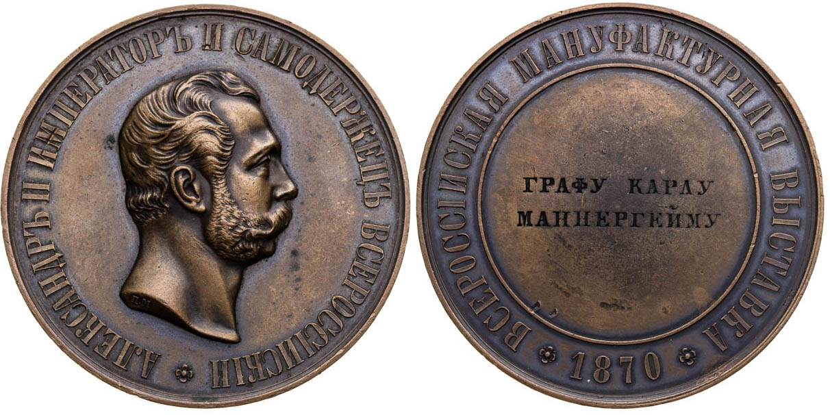 90,4 g, 54 mm, Cu, Diakov: 770, Smirnov: 694. Věnováno: Baron Carl Gustaf Emil Mannerheim.