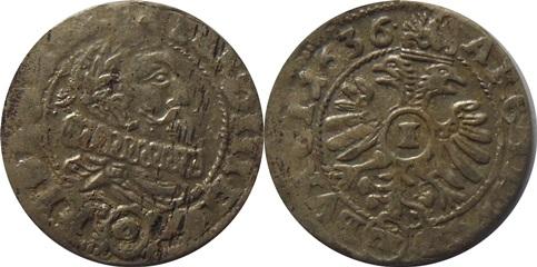 1.krejcar 1636, Olomouc - Huber, MKČ 950, varianta: mincm. zn "HZ", pór.střížek, mír. nedoraž.,
