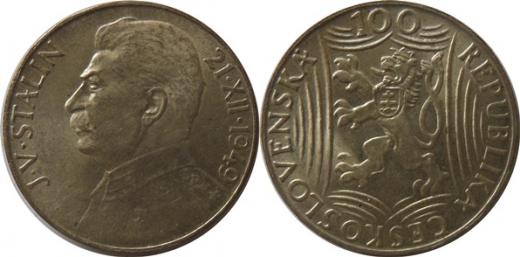 100 Kčs 1949 - Nov.49, 70.výročí narození J.V.Stalina, O.Španiel, Ag(500/1000), 14g