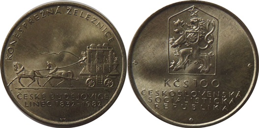 100 Kčs 1982 - Nov.148 - 150.výročí zahájení provozu koněspřežné železnice
