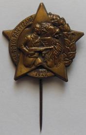 II. sjezd partyzánů Praha 1948 - sign Kokrda - plech, jehla