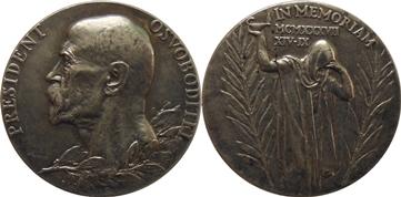 T.G.Masaryk - O.Španiel - 1937 úmrtní medaile, Ag 14,6g(987/1000),pr.30mm (mat), Av:poprsí zleva, vavřín ratolest, opis Rev:truchl. postava, palmy, Nov.01.138a