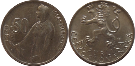 50 Kčs 1947 - Nov.43, 3.výročí SNP, O.Španiel, Ag(500/1000), 10g