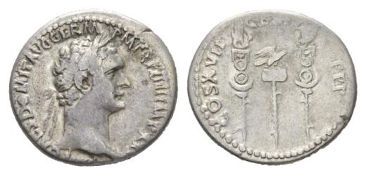 Domitian, 81-96 Cistophoric Tetradrachm Ephesus circa 95-96, AR 28mm., 9.80g. P M TR P XIIII IMP XXII Laureate head right. Rev. COS XVII CENS P P P Legionary eagle between two standards. C. 94. RIC 223. RPC 873.