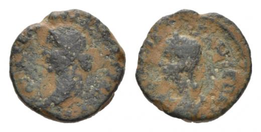 Aquilia Severa, wife of Elagabalus Bronze, Æ 18.5mm., 4.62g. ACVILIA SEVERA Draped bust of Aquilia Severa l. Rev. COL AECAP COMMPFA Bust of Tyche l. Meshorer 145.