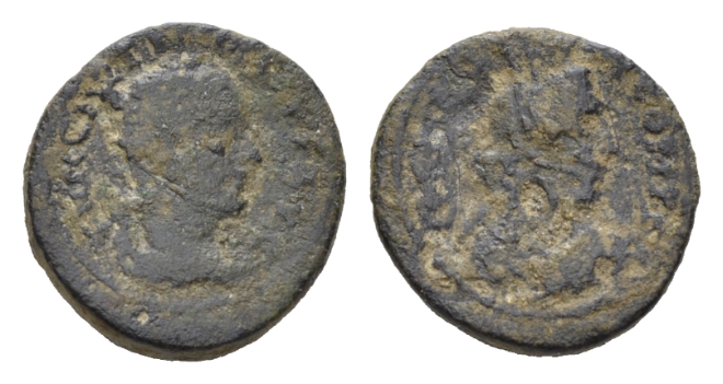 Trajan Decius, 249-251 Bronze Aelia Capitolina (Jerusalem), Æ 20.5mm., 7.64g. IMP C MES Q TRA DECIVS AVG Radiate and draped bust r. Rev. Turreted, veiled, and draped bust of Tyche right. Meshorer 158. Rosenberger 90.