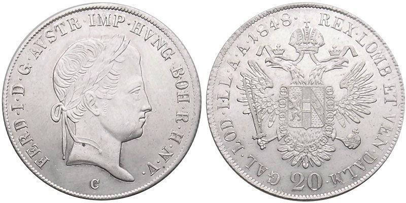20 Krejcar 1848 C, 6.70g, Früh.841