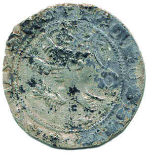 Pražský groš, rozdíl.zn.: dva kroužky_černé skvr. v rv., tém.