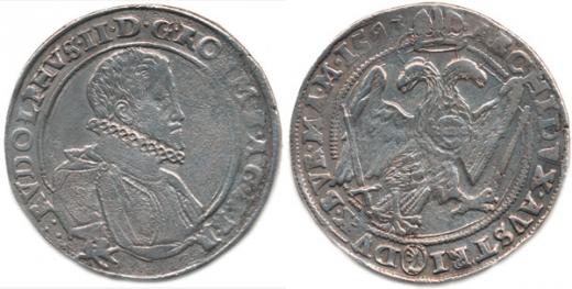 Tolar 1593, K.Hora-Herold jako MKČ 366, ale před opisem trojt ečka RVDOLPHVS.II.D.G.RO.IM.S.A.G.H.B.R / ARCHIDVX.AVSTRI() DVX.BVR.MA.M.1593 mincm.zn. č.2